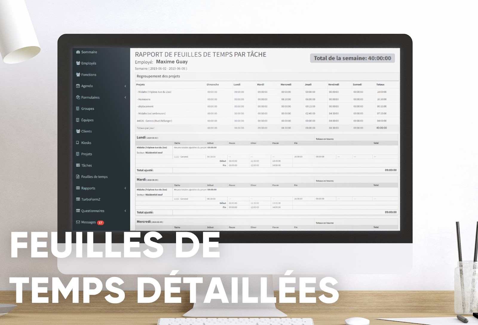 Notre outil de calcul numérique des feuilles de temps est une application intégrée qui facilite grandement la gestion des ressources humaines. Au lieu que les employés remplissent des feuilles de temps individuelles, ils pointent simplement leurs entrées et leurs sorties au travail sur leur téléphone portable, puis l’application calcule automatiquement les heures exactes travaillées. Cela facilite la gestion de la paie.